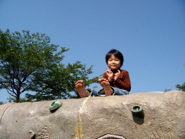 天真不,上衣了.公的攀爬器材很多,是其一;有一是攀岩;想到跟茵意大岩石,看下面的照片...