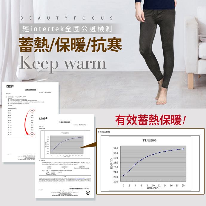 商品息特INTERTEK-有效蓄保暖。竹炭-吸透保暖。四向力-舒不。