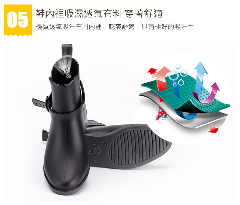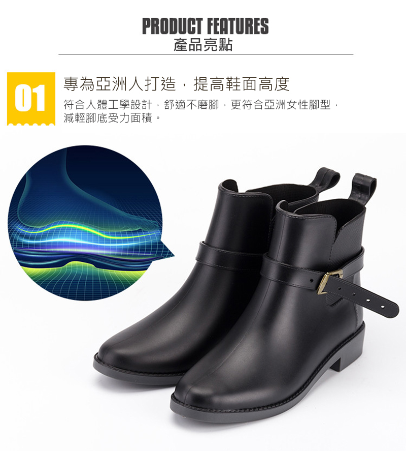 ●鞋子立有形,尚的舒鞋面搭配最新扣造型,使雨靴更富有感,穿起自信迷人!