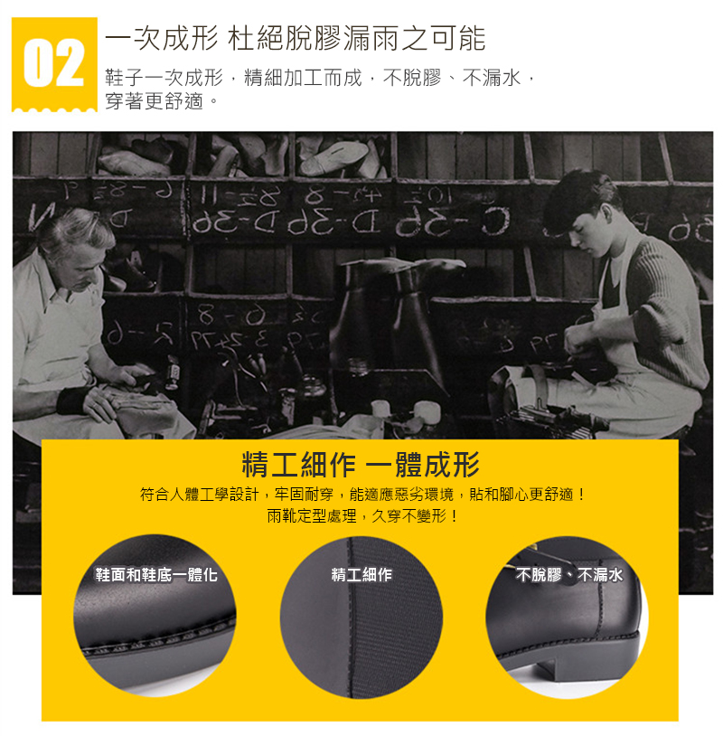 ●雨靴一次成形,精密加工而成,不、不漏水、牢固耐穿,久不形!