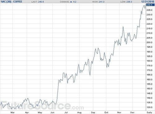 不,阿拉比卡咖啡豆在市上供有限,且巴西消力很,因此即使在 2010 年至 2011 年的作年,巴西有高的量,格也法下滑。