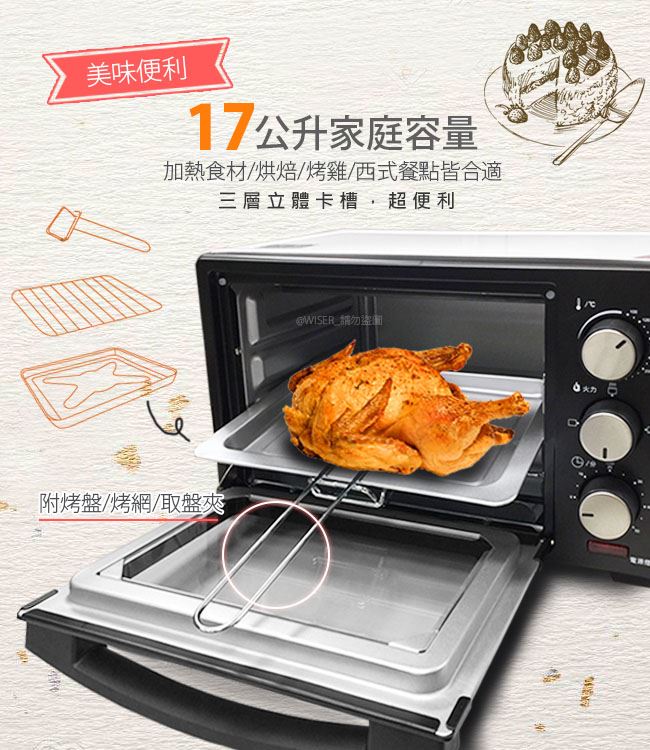 在有了【】17L美食料理好手多功能烤箱(OV-1750-D)烘培、西、加料理的好手,健康美味一次足!