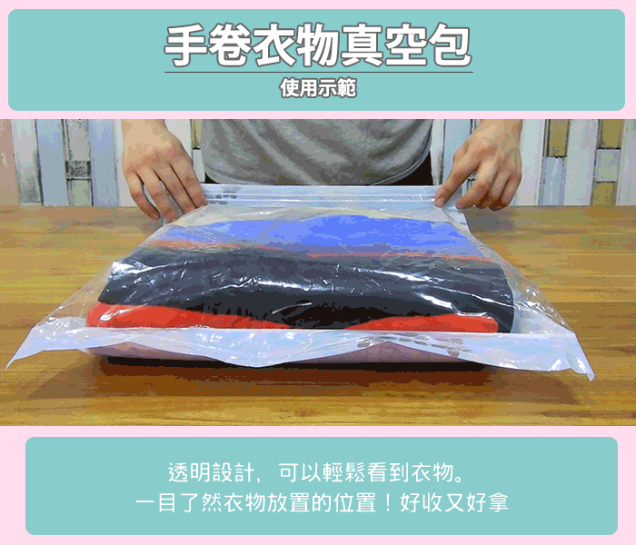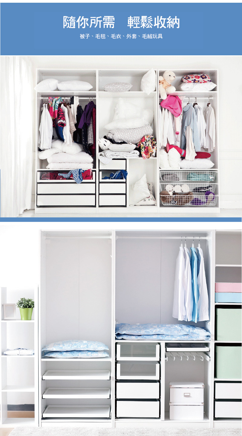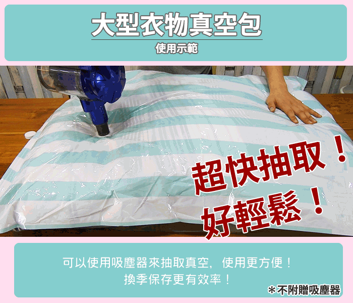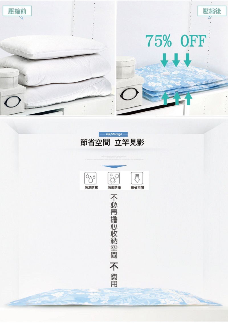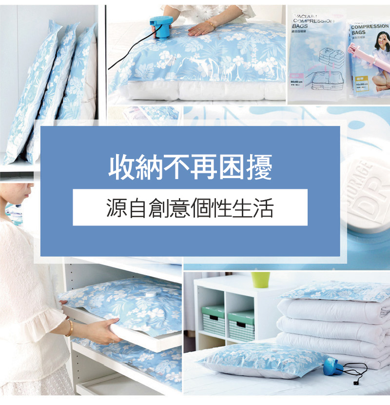 ●利手泵快速抽取真空,大的衣物瞬小容易收
