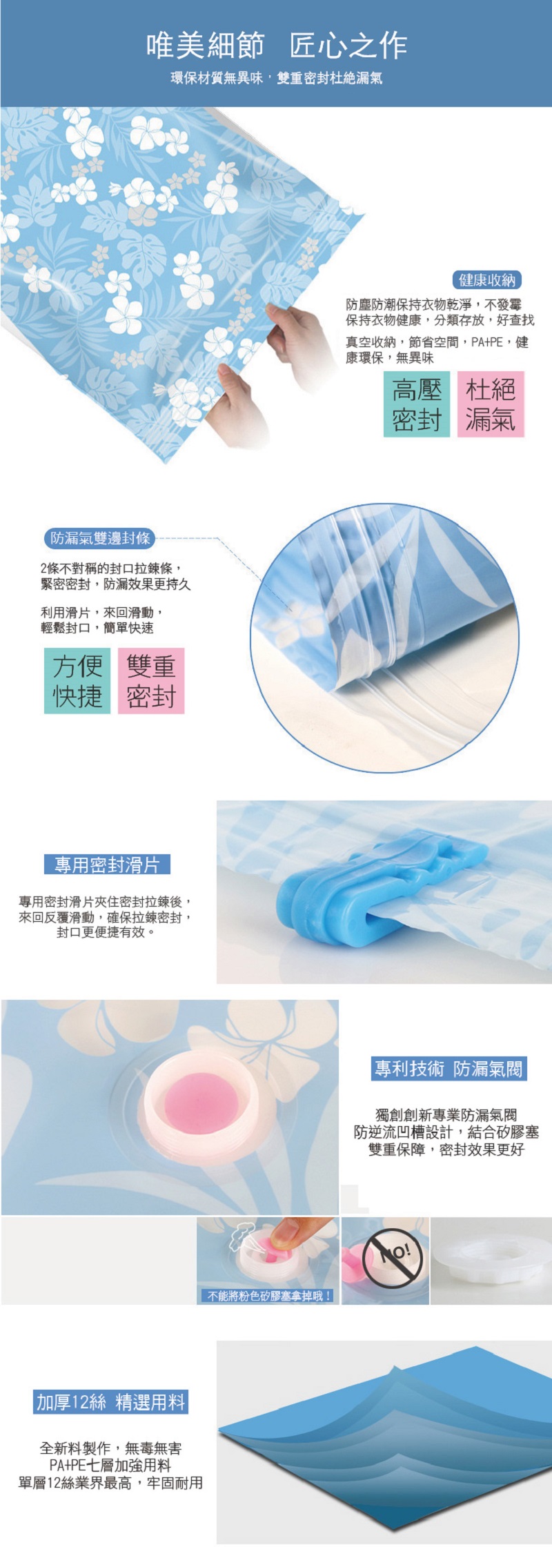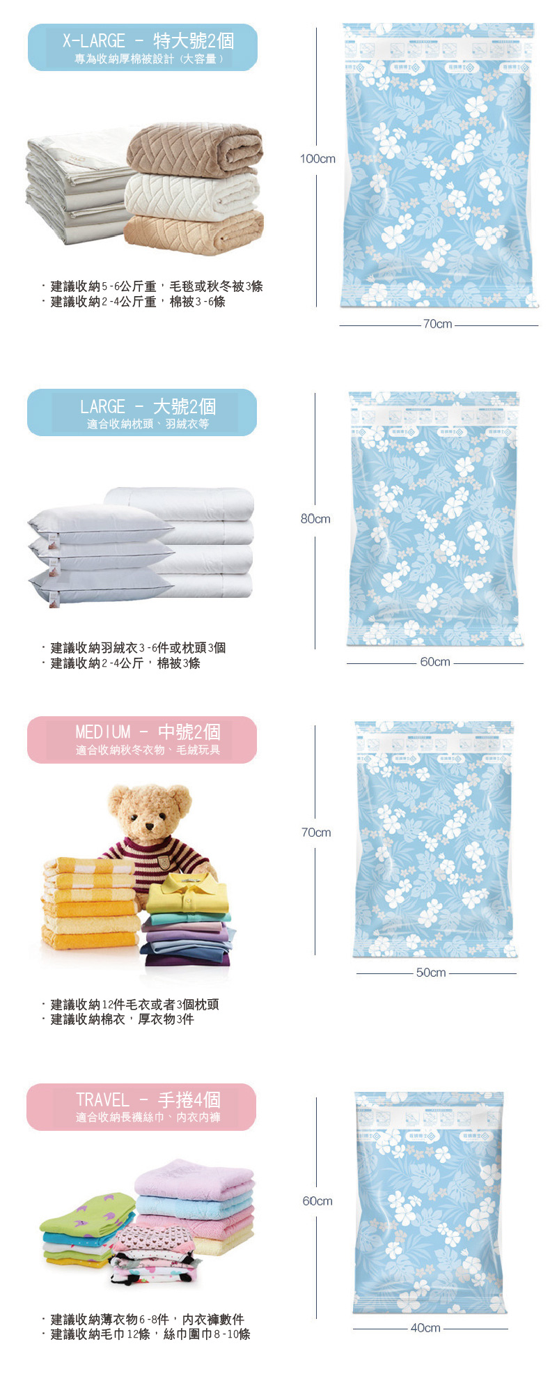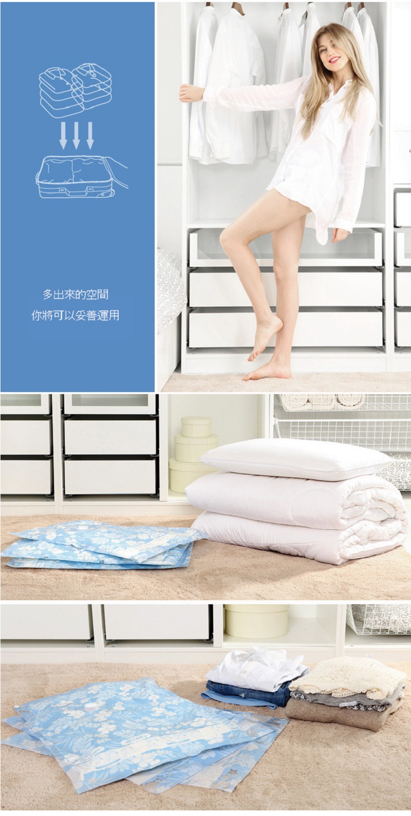 ●利手泵快速抽取真空,大的衣物瞬小容易收