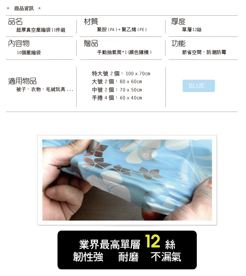 【家帝】加厚耐用真空袋超值11件 (抽筒) ,推,箱,CP值,,,便宜,惠,介,排行,精,特,周年,,限