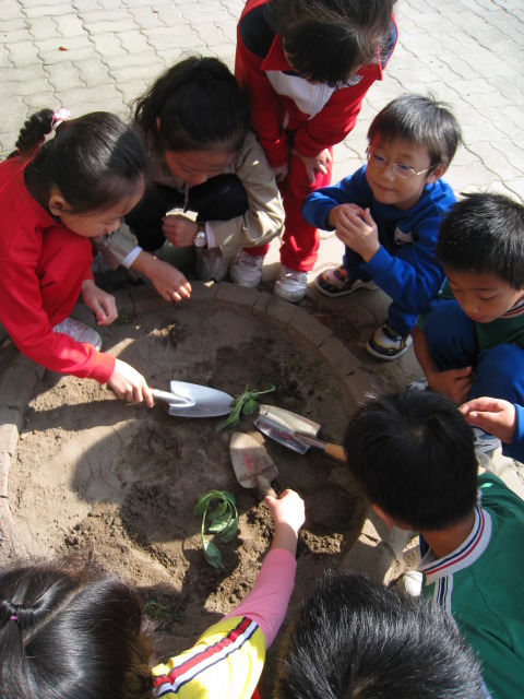 ,看著愈愈多的小朋友一到下就守在花圃前要看"花"大,