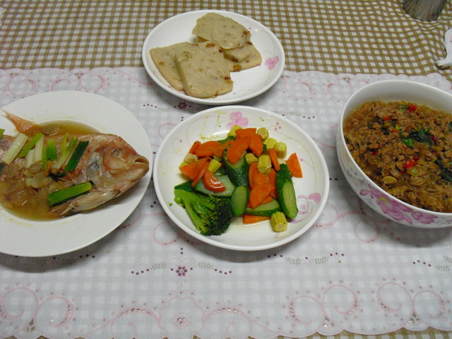 食: 炒三色蔬:和之前炒蔬菜一易熟的最慢下 味噌尼:尼身切薄刀以便辨肉有有熟,料味、味噌、豆鼓,子加水下慢煮出再倒入料味加水面煮入味 川式上:看食才知原上是四川料理,也才知何要加豆,呵~,冬粉先泡水泡,九塔、肉、辣椒、蒜、花、豆、一油,肉、冬粉入味所以先下炒再下味料加水炒至上色入味最後熄火再放入九塔花拌炒均即可上桌也是很下的一道有主食冬粉的菜 冬瓜排骨:冬瓜洗好削皮切、排骨洗放入煮熟加薄即是一道夏日品