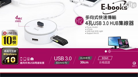 介E-books 多向式快速4孔USB3.0 HUB集器" ,推,箱,CP值,,,便宜,惠,介,排行,精,特,周年,,限