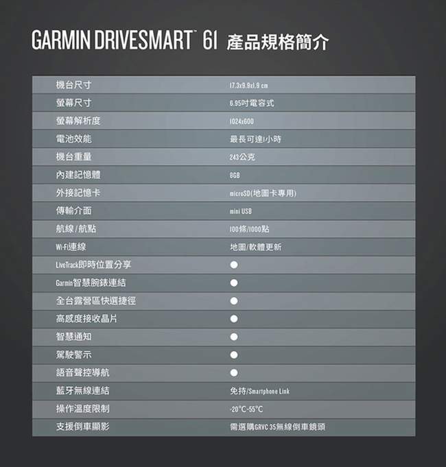【GARMIN】DriveSmart 61 行旅航家 6.95超大控幕 星航 的品介在下面,