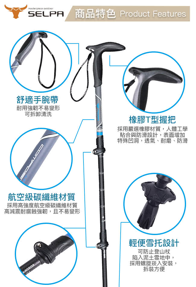 【SELPA】拓者外三式超碳把登山杖(色任)大家可以考看看