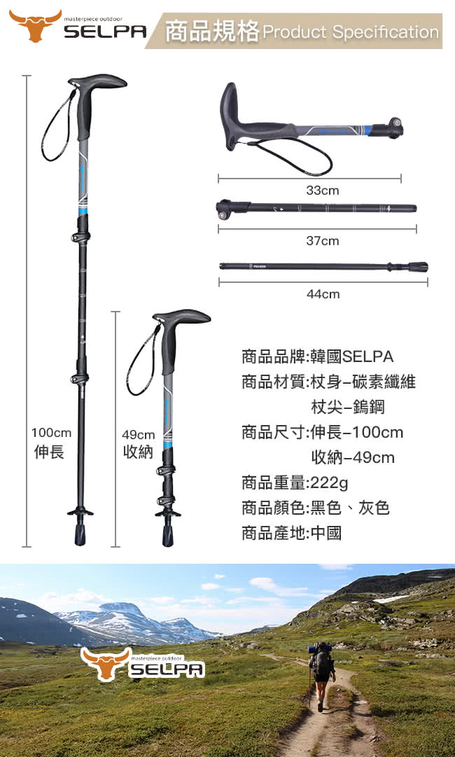 一起看看款【SELPA】拓者外三式超碳把登山杖(色任)吧!!!