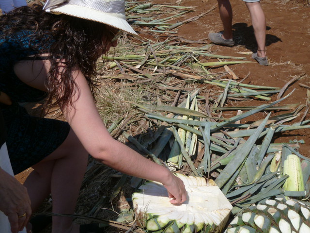 Pic Jimador把去除子的部果(就是舌心)剖半,我看面的,每人吃一小片,味道微甜,吃不太出有酒味(因蒸酵嘛)