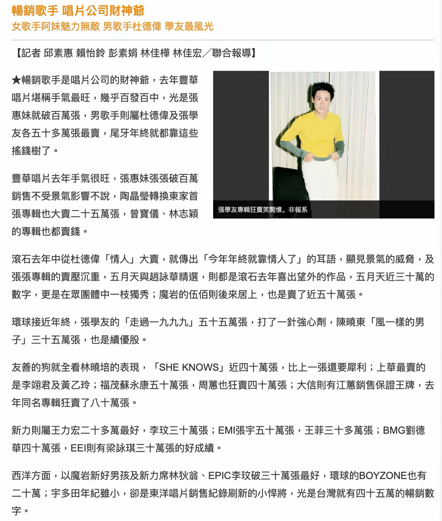 1999年台唱片量,惠妹第一名@台史上唱片量 惠妹 友治整市|PChome Online 人新台