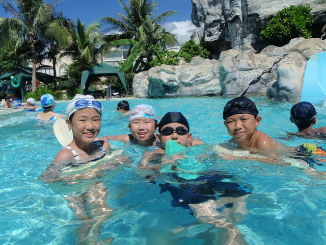 天,是玩水最棒了,它有一短的滑水道,小朋友玩的很High。