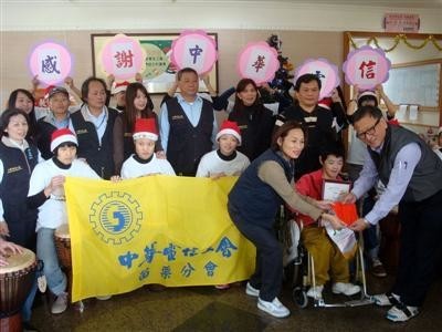 傅今天和中信主管到幼安教院加寒冬送暖活,送包、米及泡品等弱幼童,不知情的院林勤妹看到名,一度以前苗栗傅大光。