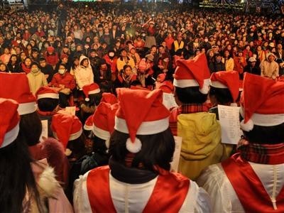 新北市府教合平安夜活,今晚在市民行,千人唱歌感受耶味。新北市高雄,互佳音,面馨。