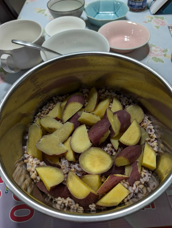 一周3天健康煮...了桂格的5+超...和白米1:1...加番薯...