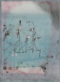 他想像的深出,克利他的新宇宙出一些素材。於的烈直是他作的最佳工具。他的以立派和抽象主基,作品常出一些奇怪的械、箭、、梯子、月亮星辰。但是其慧黠、玩具般的形掩藏不了思中黑暗的一面。以一九二二年所作的「器 (Twittering Machine)」中的械小例:它高唱,是出於被迫。