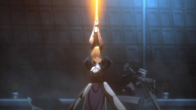 V-MAX的甲解除後,Saber武士之,王界同解除,高的王者之凝聚光,待下一刻放比之光。