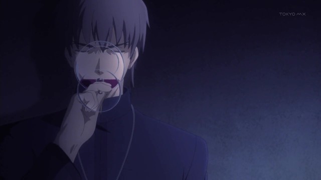 著以一副很的表情看著酒杯的,英雄王微微一笑。