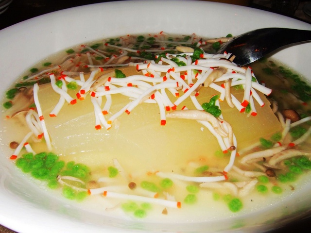 (翡翠白玉: 白玉指的是一整的冬瓜去煨煮而成,道菜有