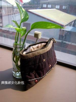 款淑女型的化包 是我最快速完成的一 做化包只想有得用就好 而有太多的思 所以就便的上像星星的案 再加上可的小扣子化包的19公分,高12公分 整作品都是用台布 拉是日本的拉我用心的地方是在拉尾部 做了,一是方便拉拉 二是增加美感~~~不料,......呵呵呵.... 作品完成後的感似乎不ㄝ (也是自己的啦...^O^...)有的候得自始做拼布以後 愈愈自了 常常一直看著自己做的拼布包 久久都不~~~~~ ㄏ~~~真是要不得ㄋ...XD