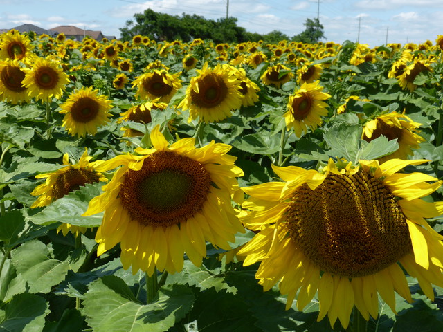 路的另一也是一向日葵田,在面奔跑,即使被花朵迎面打,也很唯美吧...