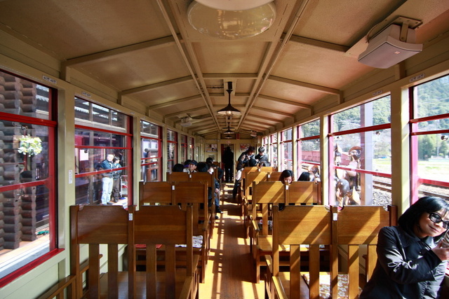 小火的充古色,道也是古的味道,山下的保津川,水流急,清得可以比美九寨的(但仍是九寨一),很美,拍下天白青山水灰石,一幅幅相片著趟二十分的程。