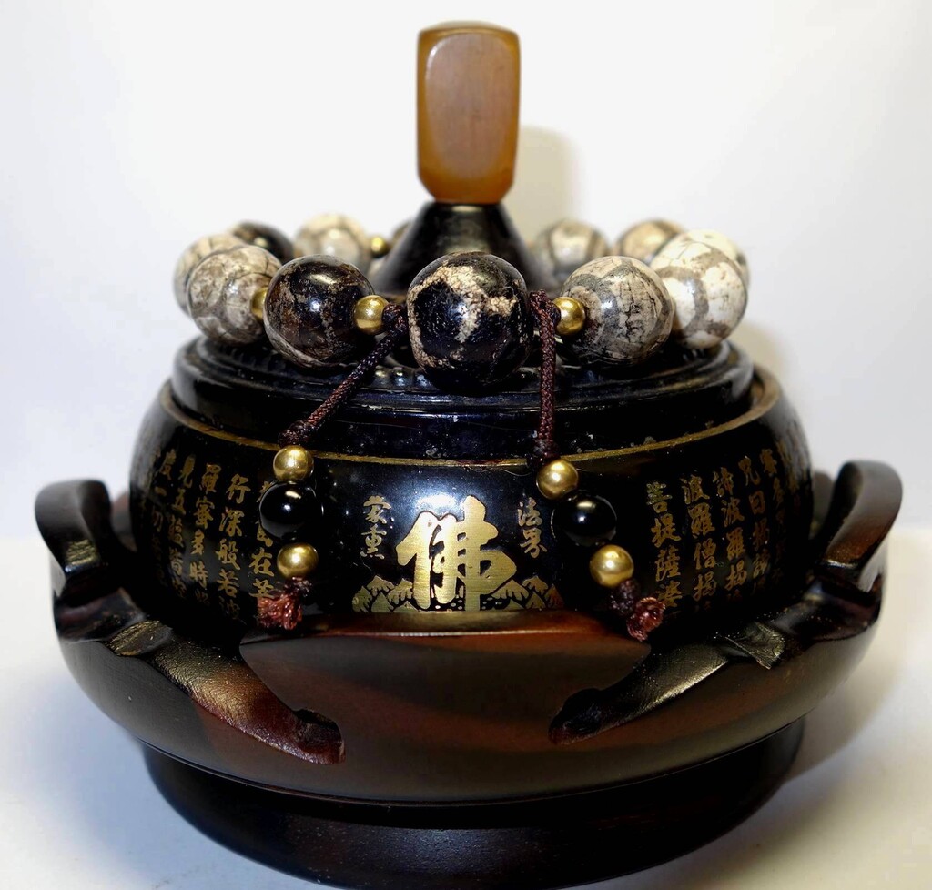 菩多佛教文物-古老的玉髓星辰眼珠.瑙古珠手(19公分.15公分)