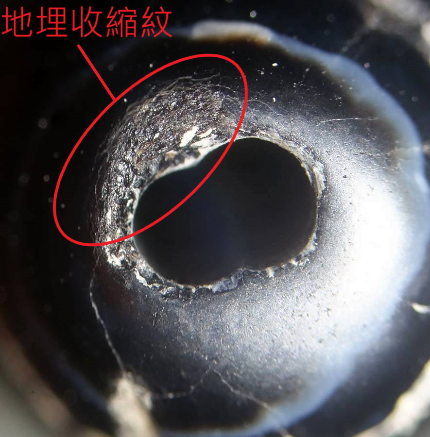 珠有收痕.皮革..灰沁.斑沁.土.晶疏落象.