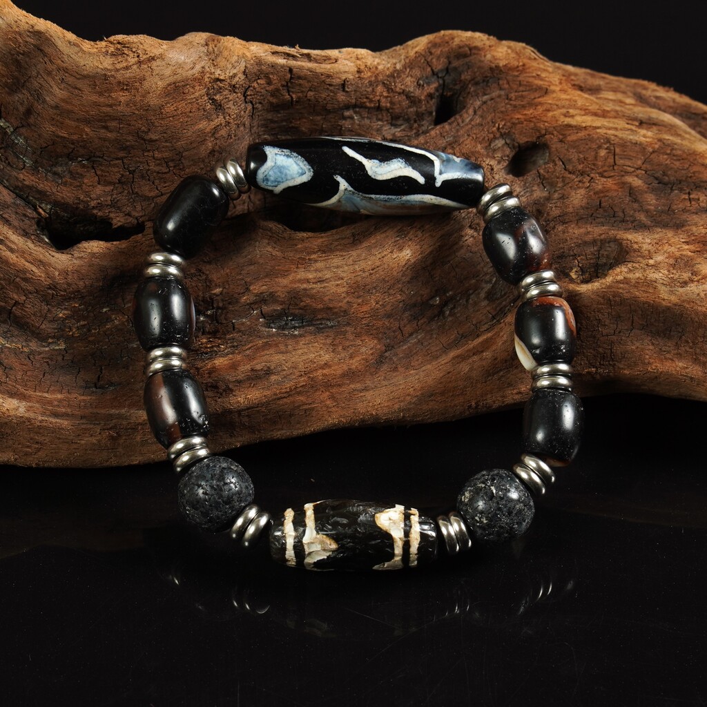 菩多佛教文物-西3色形珠及巴基斯坦虎牙珠手串(度20.3公分)