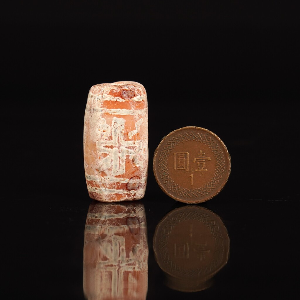 出土自甸的玉髓地埋古珠.