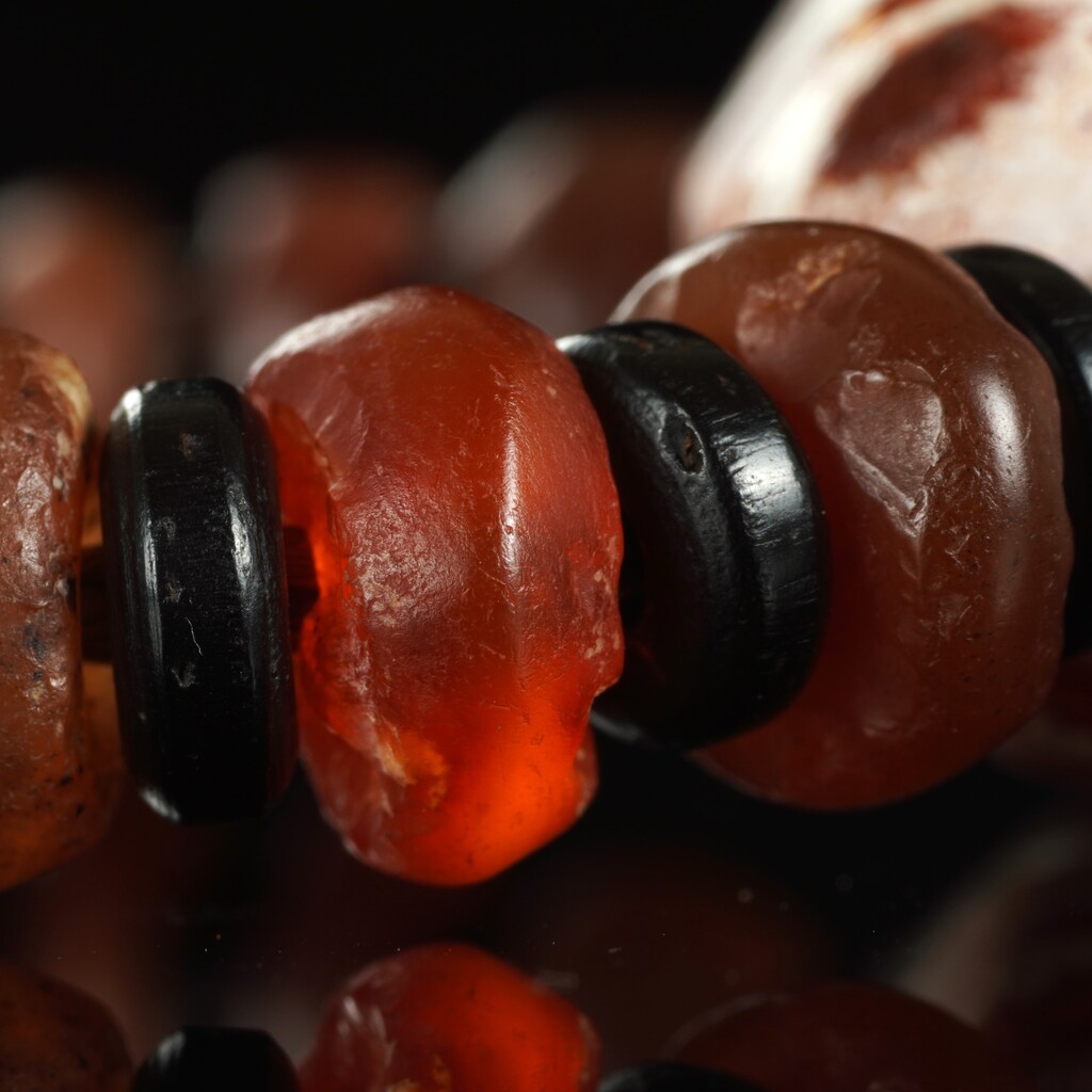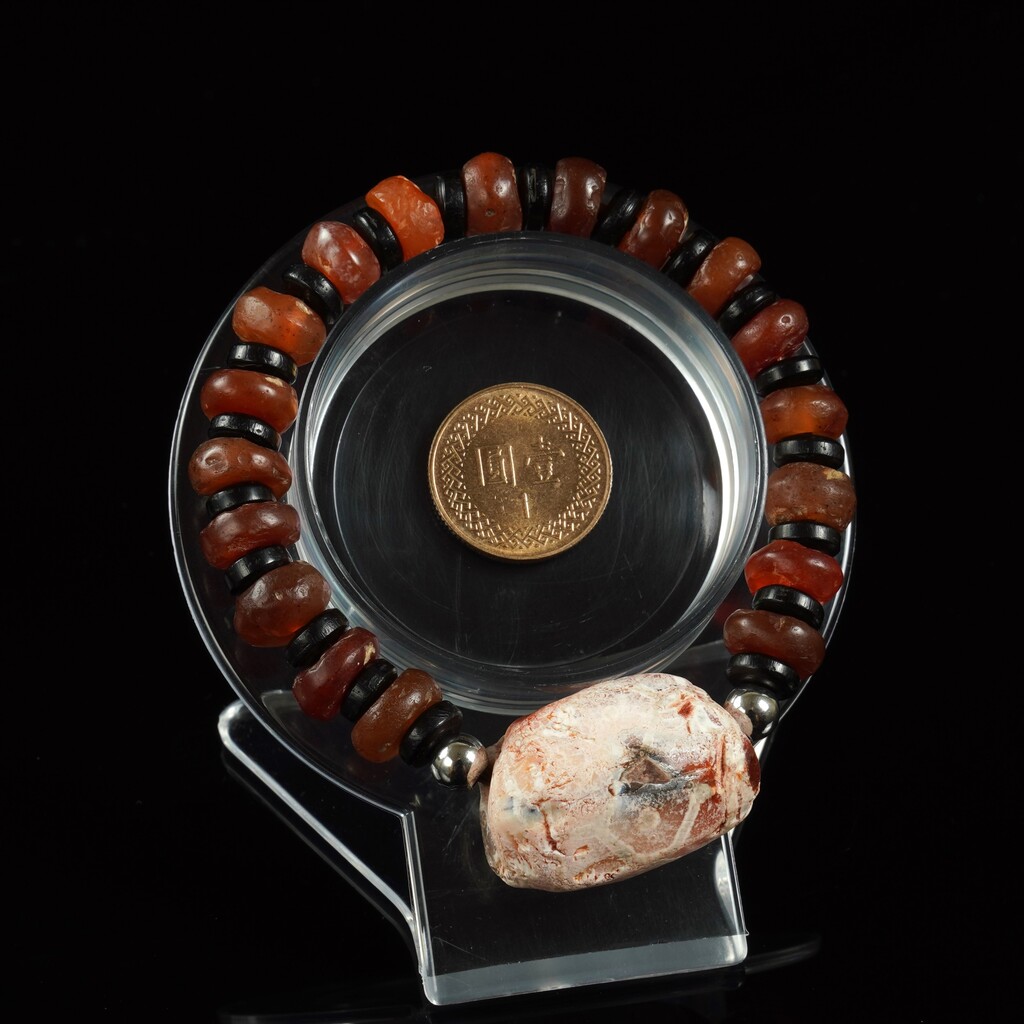 菩多佛教文物-古老的玉髓星辰眼珠.瑙古珠手(1公分.15公分)