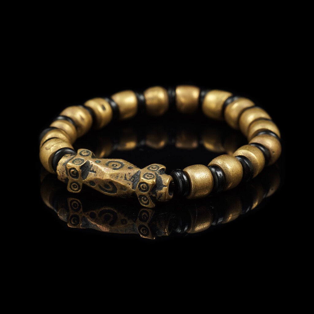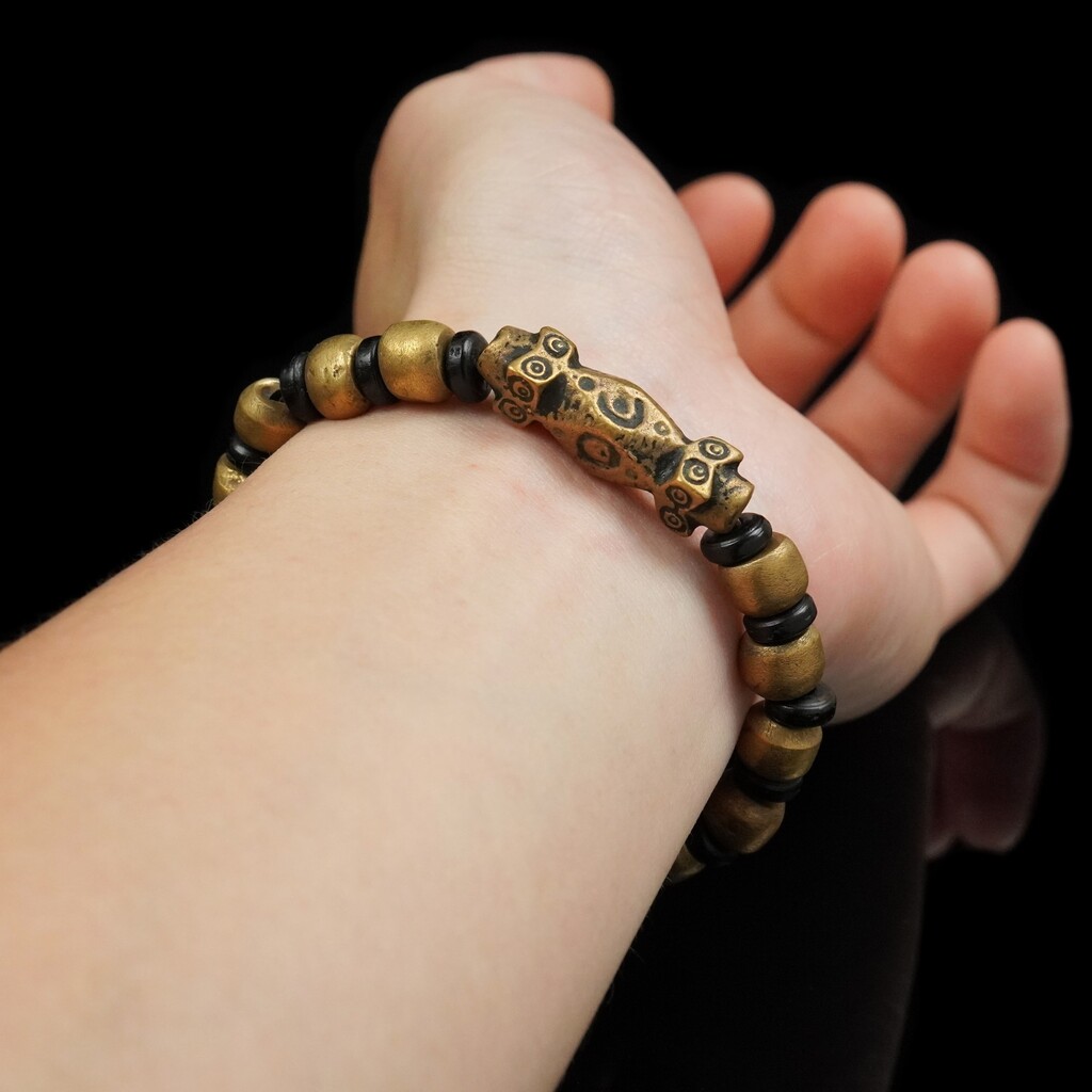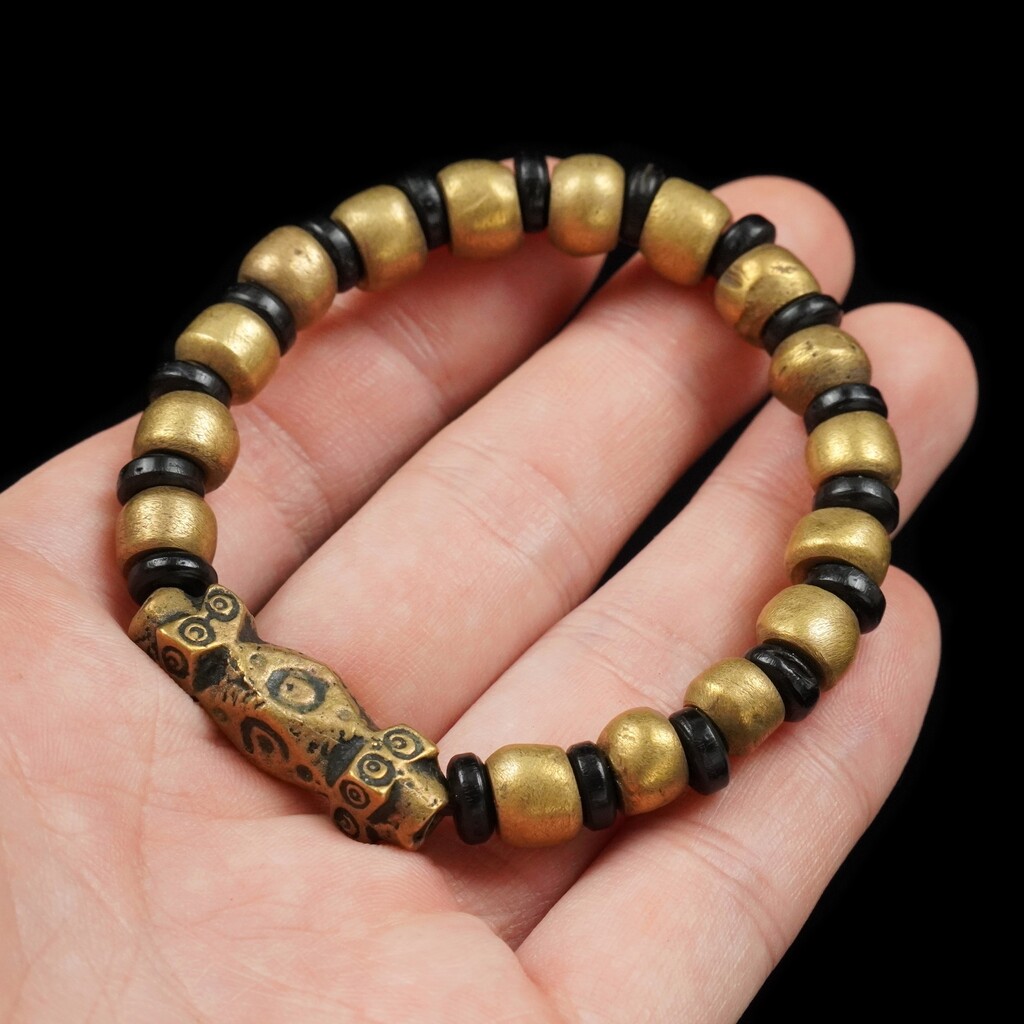 菩多佛教文物-咒法器天珠+甸佛塔打孔咒珠手串(手16分)C款