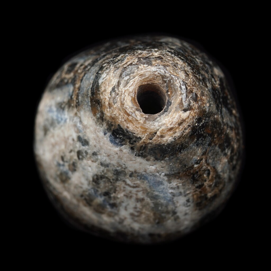 珠有冰裂.黑染子色.孔口收...等地埋古珠有特徵!