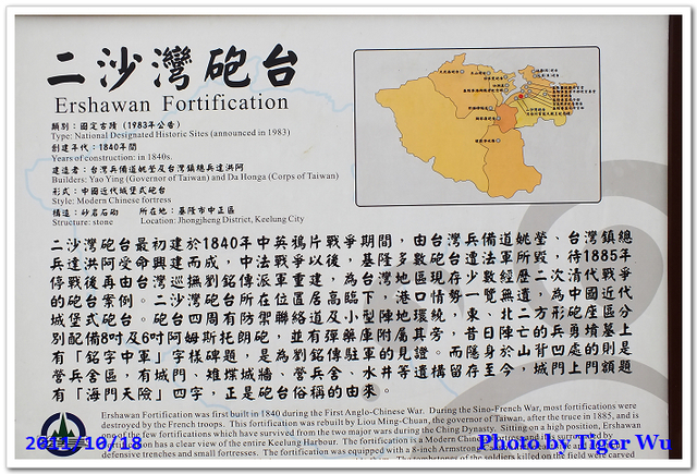 清道光二十年,中英片爆,英意入侵台,台道姚以基隆港口深,乃根地形,在境正港口的二沙山上建造台,大小墩八座,台城上有「海天」石刻方匾,派兵守。在的二沙台,根是一八八四年,「」抵基隆,第二天法就跟而,方在基隆大沙展激烈。一千官兵在率下退法,今天列一古的基隆二沙台,便是年所建。
