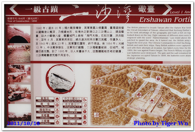 台家一古的基隆市二沙台,又名「海天」,用中城法,依山而建,雄;中英片,清防英入侵台,依地形在二沙山上建造台,之後台被,今所是由所建。台有台、北台、古井、及城垣等。