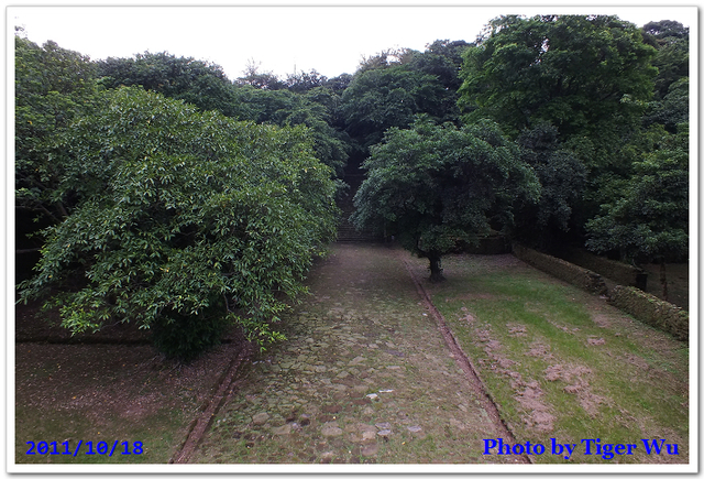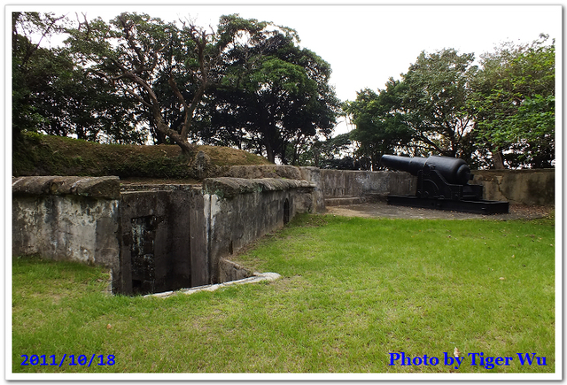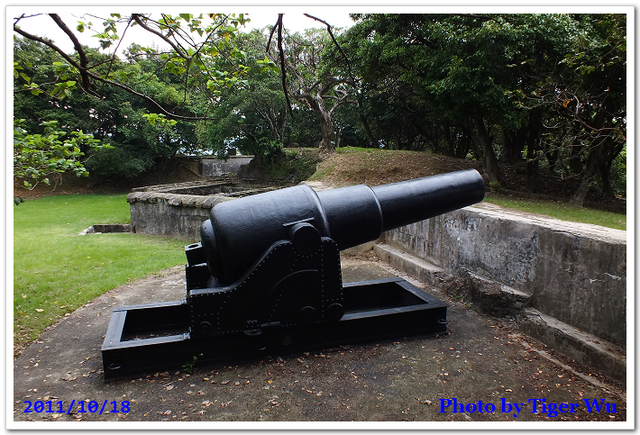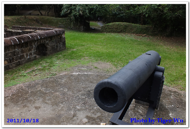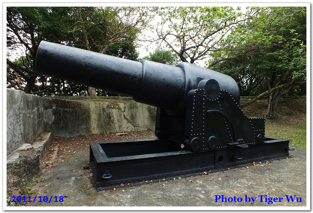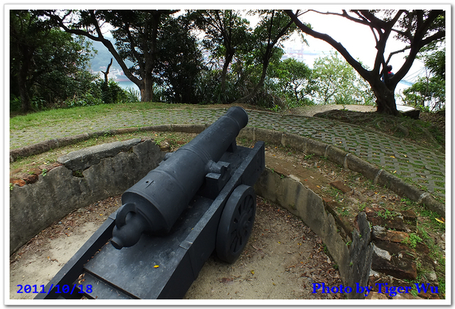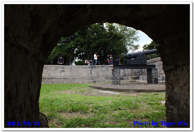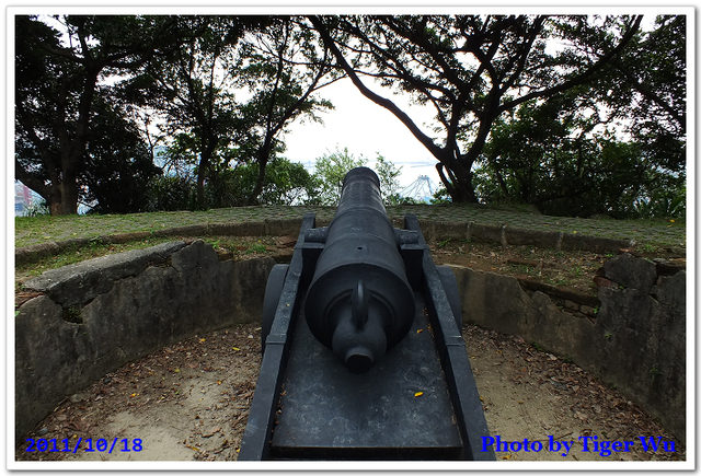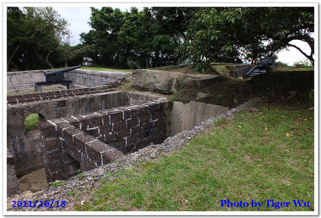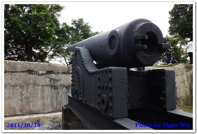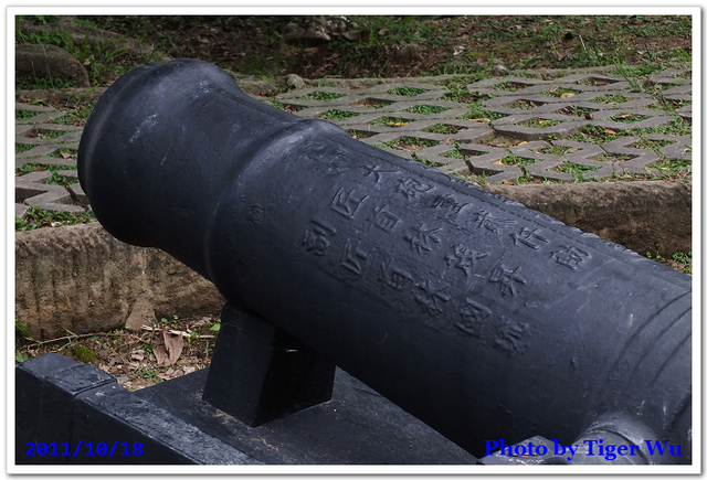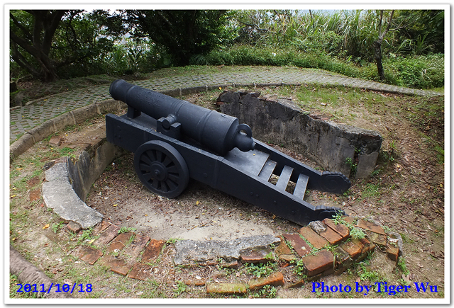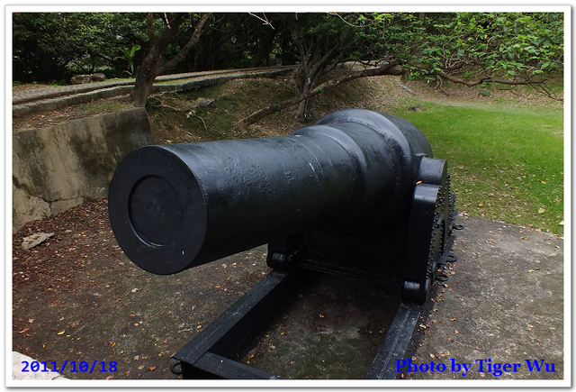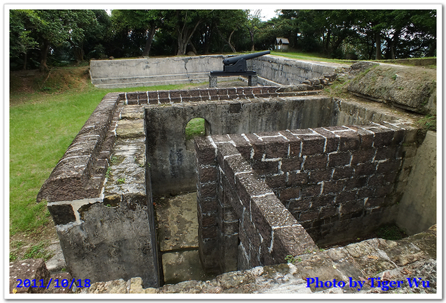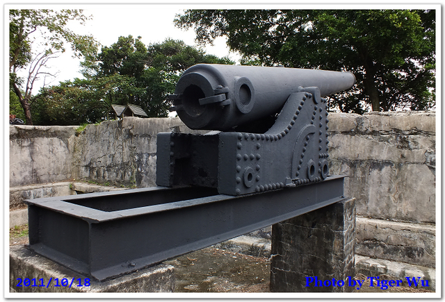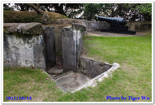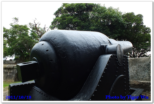 置有仿一尊,仿自一八七五年沈葆置於「金城」的四七阿姆斯托朗後膛,而原放置此的是置的六阿姆斯朗後膛。仿只仿管板,磨心以架取代,管有一洞,像是德克伯的栓,可能是仿的失。位於前方及西北角的形地,可能是後人增建的地,目前各放置一尊仿的前膛。其中一支身文「光二年奉造」乃仿目前放置於和平海公之古。