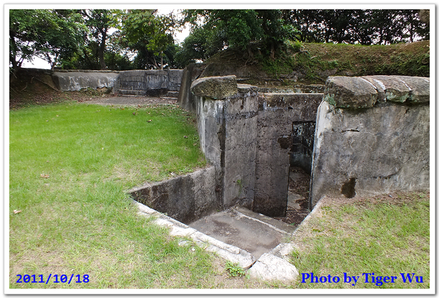 台方面,有包括座及一,座包含子基部分,子成ㄇ字型,主要功能是掩座兵。基大致呈半形,架置放,以水泥小石「逐封」而成,面大的基上置有一仿美式阿姆斯十二前膛。日期台北部施政所,海天配火有八英阿姆斯朗後膛一尊、六英阿姆斯朗後膛二尊,所以置於梅的八英阿姆斯朗後膛很可能就是原放置於此的火。