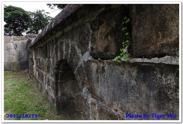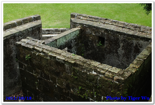 、北台各有一座,躲避兼作需要,半地下室的建形式,重防的「回」字型,正位的一小拱窗做孔,外斜披出的「石雨庇」, 雨水屋直接滴下,不流到面。