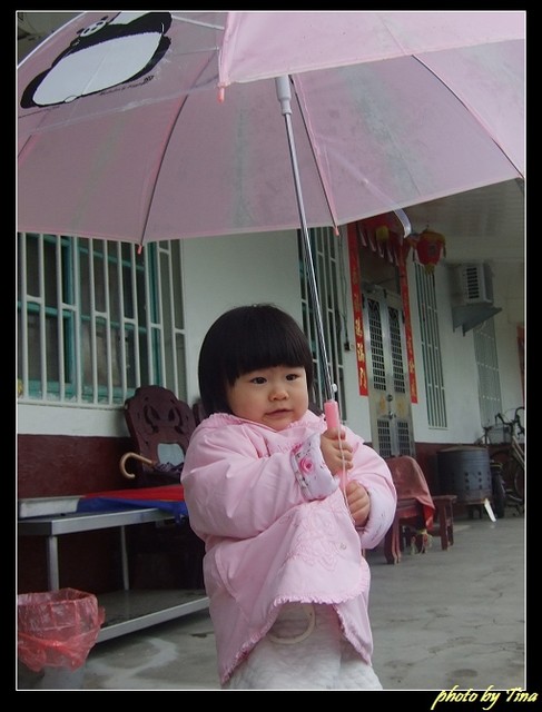 ↑(一吹打破了好不容易持的平衡, 小小的手竟力道有限, 拿不住雨了)