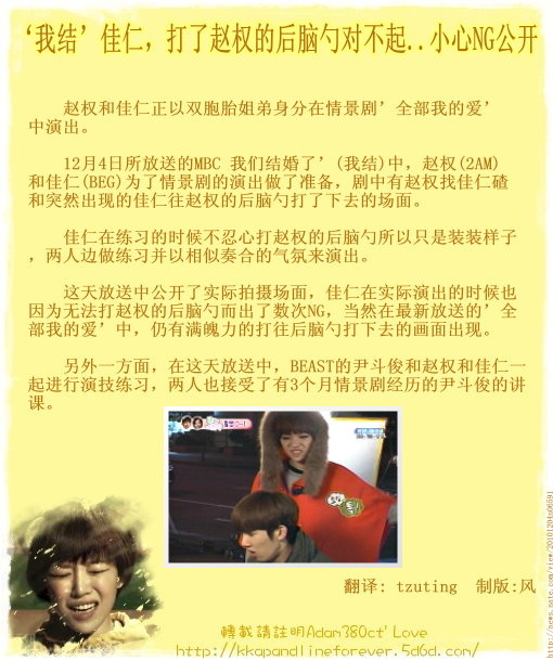 2010-12-07 BEG的佳仁:“放屁和眼的定演技感到最困”突然的告白