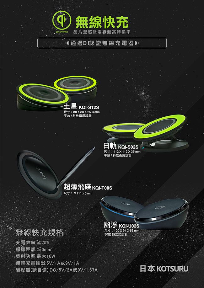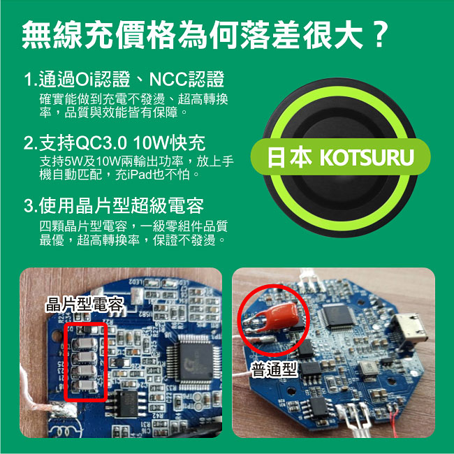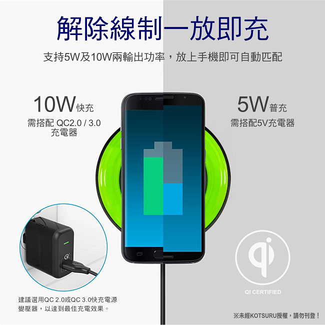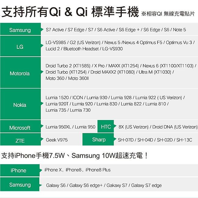 Qi 15W max,高速快充 支持QC2.0/3.0快充,使用晶片型超容 超高效率,超薄