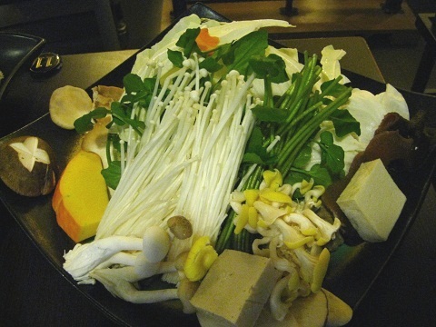 服生送上了搭配的蔬菜,有白菜、色的小芹菜、金菇、舞菇、南瓜、胡、小肉丸及百豆腐等等,看起挺富的。