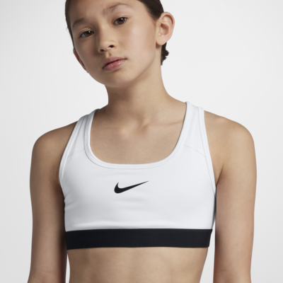 Nike Classic 大童 (女童) 運動內衣採用排汗布料與緊身剪裁,可在練習或比賽時常保乾爽舒適,同時享有支撐效果。