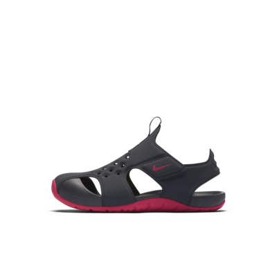 Nike Sunray Protect 2 小童涼鞋具有防水鞋面以及柔軟的泡棉避震設計,能隨幼童的小腳靈活伸縮。涼鞋採取好穿脫的雙重魔鬼氈固定帶設計,讓幼童輕易穿上固定,開心玩耍。