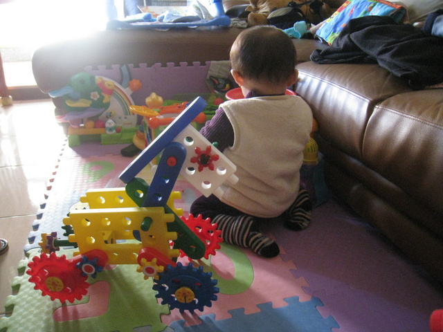 反倒是爬去把鼻那玩「吊」玩得咯咯笑!(指力、臂力超)