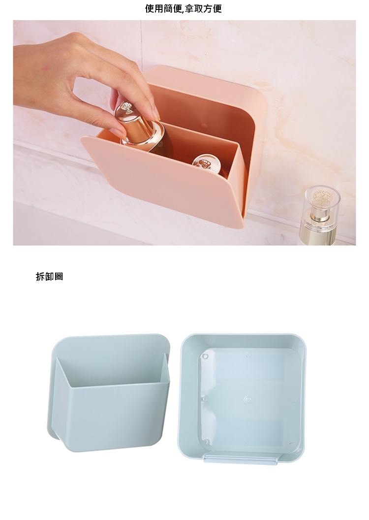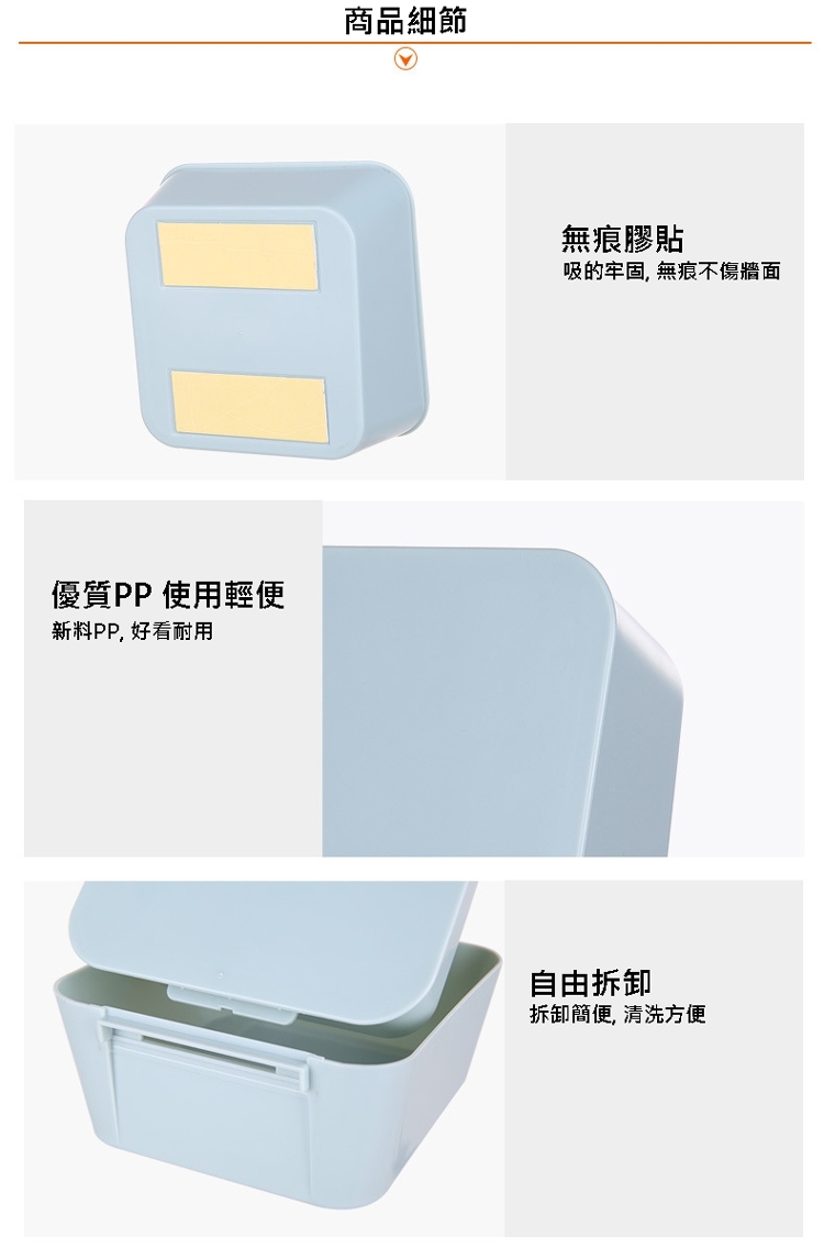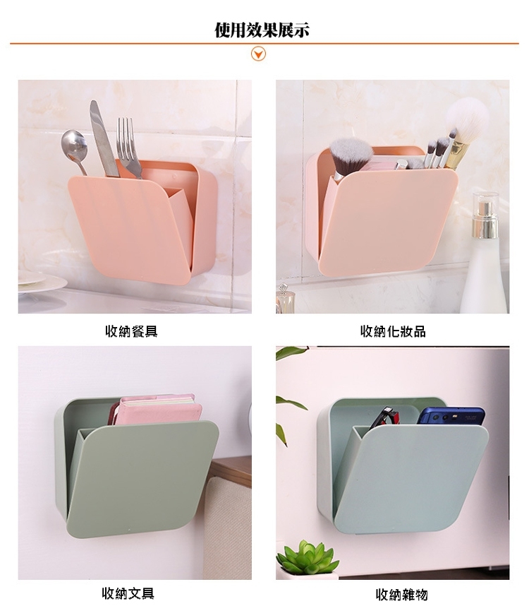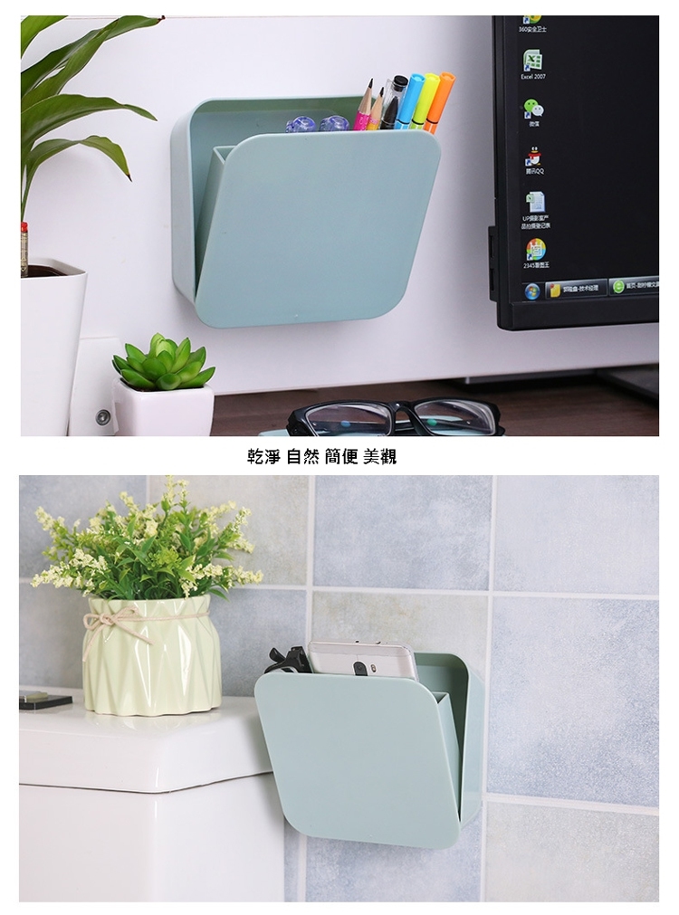 多功能面粘式收盒,用PP材,防水防潮,不怕,固耐用。自由,可以保容物,可以省空。力痕黏,防水牢固,不面。拆卸,易於清洗。收餐具/文具/化品都合,放置容易,拿取!