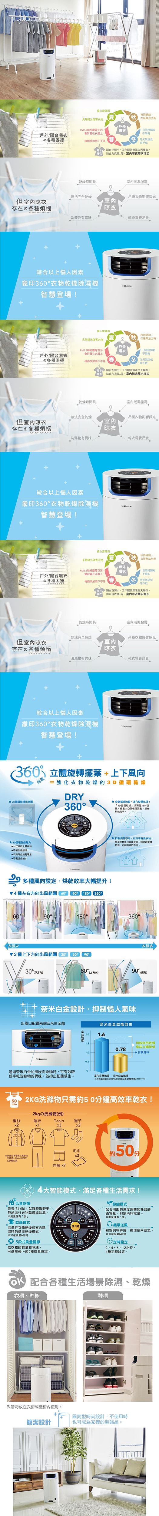 2KG洗物只需50分高效率乾衣,360°立旋+上下向,奈米白金,抑制人味