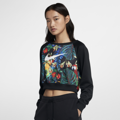 Nike Sportswear Print 女款圓領上衣,展現女性魅力。採用熱帶花卉印花設計,搭配短版圓領下擺,打造修身造型。